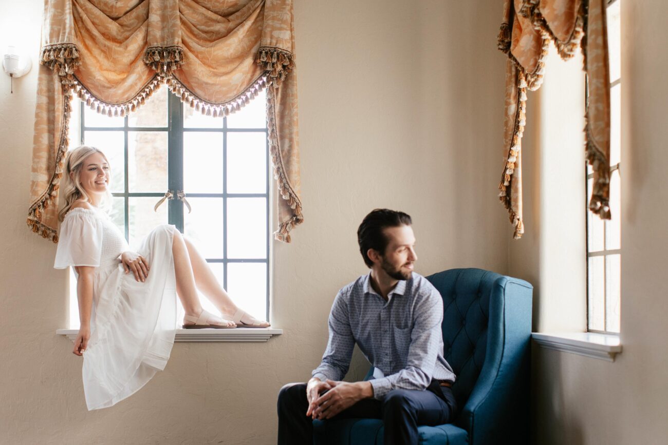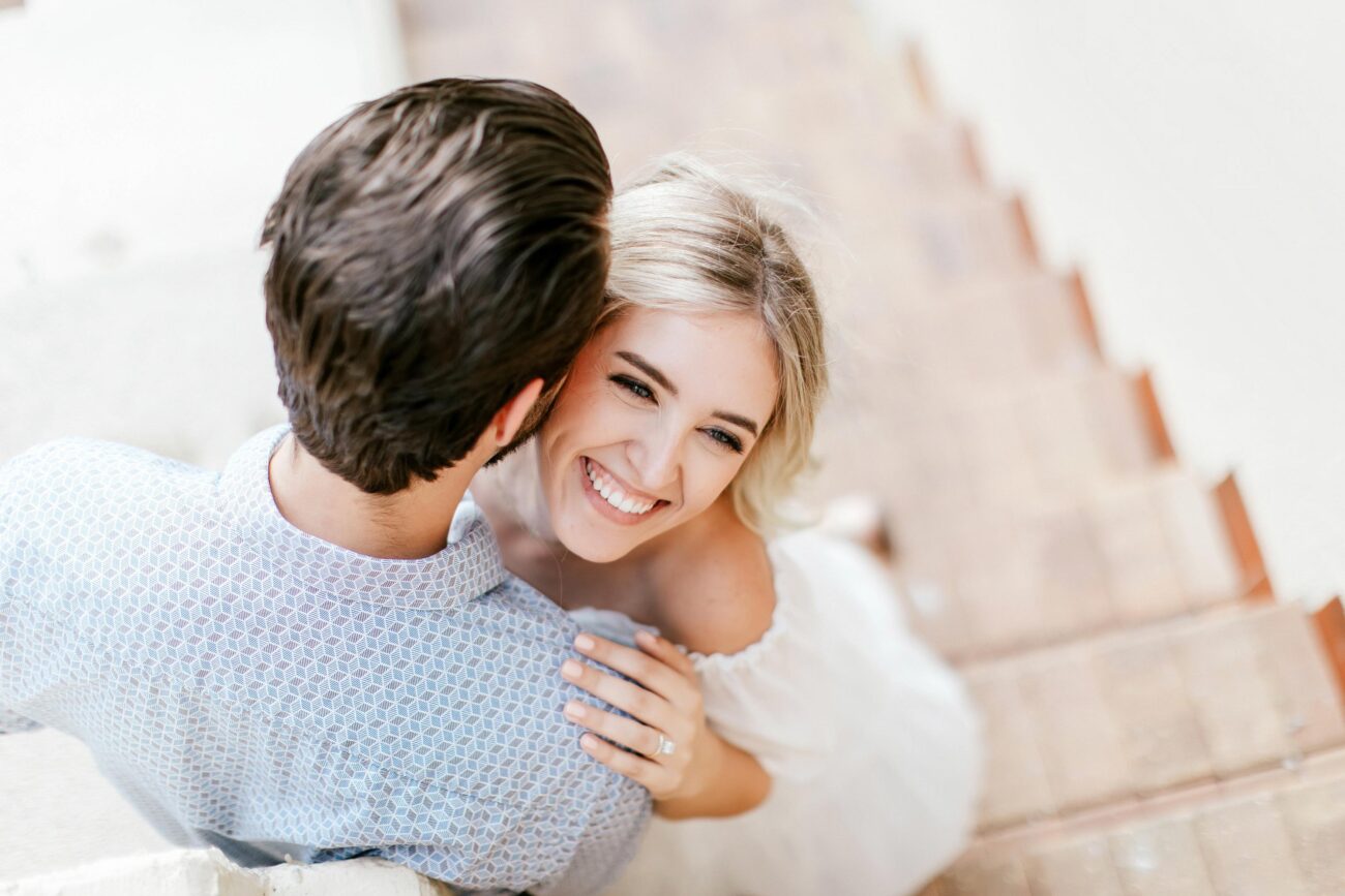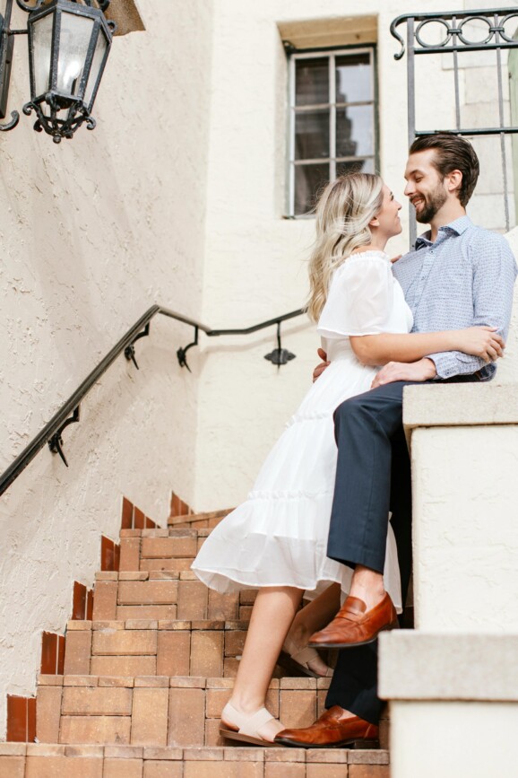 As you step onto the grounds of The Powel Crosley Estate, you’ll be transported back in time to an era of refined sophistication and grandeur. Built in the 1920s by renowned entrepreneur Powel Crosley Jr., this Mediterranean Revival-style mansion exudes old-world charm at every turn. From its majestic columns and ornate architecture to its lush gardens and sweeping waterfront views, The Powel Crosley Estate provides a stunning backdrop for an unforgettable photography engagement session. This is place is a wedding photographer’s dream and we know it like the back of our hand! When we met with Amanda and Joe for their session at the Powel, everything fell into place perfectly. From the first shot we took, it was evident that these two were madly in love. Their cute and playful vibe kept everything light and easy going so all we had to do was position them in the best light and give them small suggestions to come away with these stunning images.